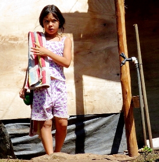 Dieses kleine Mädchen ist auf dem Weg, um sich zu waschen. Auch sie und ihre Familie sind Opfer der Überflutung und wurden evakuiert in dieses Ghetto.