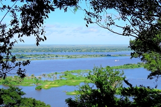 Ein Blick nach Argentinien rüber und auf den Rio Paraguay läßt die Überflutung der starken Regenfälle im Januar nur erahnen ... noch immer führt der Fluß 5 Meter Hochwasser über dem normalen Wasserstand.