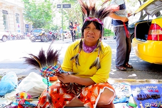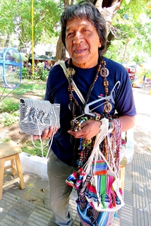 Auf dem gegenüberliegendem Plaza werden bunte Handarbeiten der Maco-Indianer angeboten. Zum Glück habe ich ein paar Guaranis eingesteckt … wenn auch nicht nötig, ich kaufe den „fotogenen“ Indios ein paar Kleinigkeiten ab.