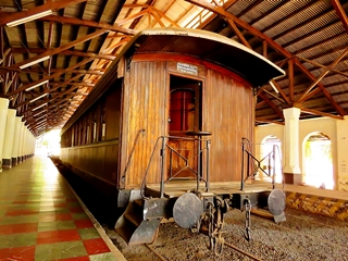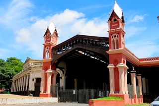 Zum Abschluß unseres heutigen Innenstadt-Besuchs fahren wir zum alten Bahnhof. Die Eisenbahnstrecke von Asuncion nach Encarnacion war die erste Strecke in Süd-Amerika überhaupt. Zwei aus dieser Zeit stammende Wagons und eine Lok sind hier ausgestellt …