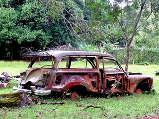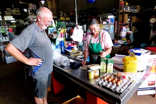 An der zum Teil ungeteerten Straße am Rio Parana entlang sind schwere Erd- und Bauarbeiten zu Gange … wir fahren die gleiche Strecke bis zur NR1 wieder zurück. Wir meiden die einst von Jesuiten gegründete Hafenstadt Encarnacion … fahren auf der Landstrasse über die deutschen und japanischen Kolonien La Paz und Pirapo. Bevor wir unser heutiges Ziel anfahren, benötigen wir noch ein paar Vorräte. In einem alten Lagerschuppen finden wir einen „Supermarkt“ … kreuz und quer und ohne System ist die Ware irgendwohin gestapelt. Wir werden fündig … die supernette „Tante Emma“ schreibt sogar alle Preise noch per Hand auf. Die 8 Eier berechnet sie nicht … das seien doch viel zu wenig.