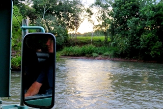 Inzwischen ist es schon fast dunkel geworden … wir müssen schnellstens zurück. Diesmal rutschen wir fast in den Fluß … die Durchfahrt ist jedenfalls angenehmer als die Rüttelei auf der Piste.