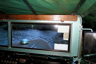 Die Fahrt durch den Urwald ist mehr als rumpelig … immer wieder muß ich aufpassen, daß ich mit der Camera nicht aufschlage. Ruben kennt seinen Oldy und die Strecke … ruhig und gekonnt rangiert er uns durch die dicht stehenden Bäume hindurch … auch mit den Köpfen müssen wir vor zurückschlagenden Ästen immer wieder in Deckung gehen. Ups … jetzt geht’s aber nicht mehr weiter. Vor uns liegt ein Fluß … und genau den steuert Ruben jetzt für eine Durchfahrt an. Strömung, Wasserstand 1m, ein guter Fahrer, ein Mercedes-LKW Baujahr 1964 mit Allrad … was kann uns schon passieren.