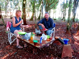 Die Dortmunder Birgit und Waldemar kommen mit ihrem in Chile gekauften Toyota-Hilux auf´s Gelände gefahren … sie haben die letzten Monate den Süden Amerikas bereist und wollen jetzt über Paraguay und Nord-Argentinien bis Bolivien weiter reisen. Vor den Beiden nehmen wir mal den Hut ab … mit ihrem nur provisorisch, ausgebauten Hilux ist echtes Outdoor-Leben und Kochen angesagt.