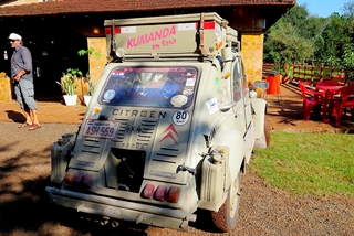 Auch Walter, gebürtiger Frankfurter, kommt mit seinem Super-2CV vorgefahren. Er ist soeben mal 5000km mit seiner selbstgebauten Quadro-Ente zwischen Bolivien und Argentinien hin und her gefahren … eine gebuchte Tour, die er mit Ulf aus Wolfsburg unternommen hat. Die Beiden kommen so ziemlich erschöpft eines Nachmittags hier an … haben sie doch die letzten 400 km in nur ein paar Stunden abgerattert. Wir hatten schon viele Geschichten über Walter und seine Enten-Touren gehört … daß er jetzt hier vorfährt, freut uns ganz besonders. Walter und Ulf haben eine tolle Reise gemacht … ihre Erlebnisse von dieser gemeinsamen Reise sind super spannend und interessant.