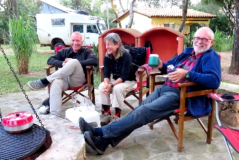 Die Zeit bis zum endgültig letzten Zahnarzttermin verbringen wir selbstverständlich wieder in „Hasta la Pasta“. Hier freuen sich nicht nur Marion und Rene auf uns … die Schweizer Iris und Stefan verlängern ihren Aufenthalt, als sie hören, daß wir noch einmal hierher kommen. Die beiden Schweizer kennen uns schon länger über unsere Webseite … bereits in Brasilien sind sie ab und zu unseren Reifenspuren gefolgt.