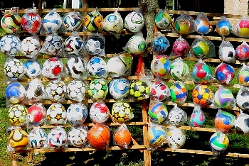 Wir passieren die Ortschaften ohne ein weiteres Mal anzuhalten. Was für uns unerklärlich bleiben wird … in einem Dorf bieten die Straßenhändler und Geschäfte immer wieder die selben Produkte an. So gibt es in Paraguari zig Anbieter mit Chipas, im nächsten Ort wird überall die bunte Keramik angeboten, ein weiterer Ort bietet nur grellfarbene Gartenstühle an … im nächsten Kaff werden Hunderte von Fußbällen angeboten usw., usw.