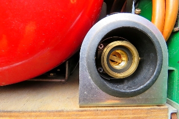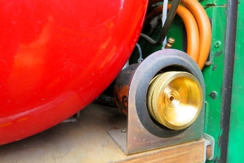 Für die Heizung können wir jetzt endlich wieder unseren eingebauten Gastank benutzen. Mit dem neuen Adapter läßt sich der Tank ohne Probleme an jeder Füllstation befüllen.