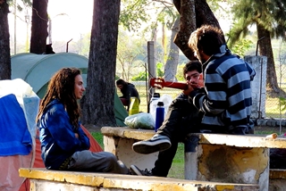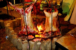 Zu Hunderten kommen die Fans angereist … bevor das Spiel Tucaman gegen Buenos-Aires in Saltas Stadion ausgetragen wird, wird erst einmal richtig die Sau mit Grillen und Saufen raus gelassen. Bis zum Nachmittag werden wir eingeräuchert, mit lauter Musik beschallt und mit fettigem Fleisch versorgt. Unglaublich … unser halber Haushalt wurde zum Grillen ausgeborgt … kommen unsere engen Nachbarn doch mit Kilos von Fleisch und haben weder Messer, Trinkbecher noch Teller dabei.