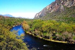 Nur ein Fahrzeug kommt uns auf der ganzen Strecke entgegen … das ist auch gut so, denn so manche Kurve ist wirklich nur einspurig. Wir stoppen dieses Fahrzeug und fragen die Argentinier nach dem Wasserstand des Flusses. „No aqua, no problema“. Beruhigt fahren wir weiter … bewundern die Bergmassive zu beiden Seiten und beobachten einige Condore hoch oben in der Schlucht.