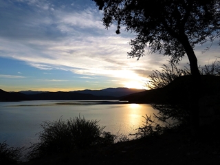 … finden ein schönes Übernachtungsplätzchen direkt neben der Staumauer mit Blick auf den Embalse Cabra Corral.