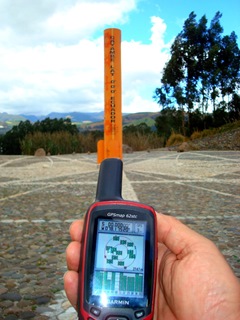 08.07.2014 ... nach 20 Tagen brechen wir endgültig auf. Wir sind auf dem Weg zu Quitos Flughafen. Zum ersten Mal auf unserer Reise überqueren wir den Äquator … die Mitte der Welt. An der „Solar Clock“ wird die richtige Position mit einem Denkmal angezeigt … das GPS-Zeitalter macht es möglich.
