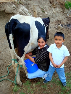 Wir unterhalten uns mit dem jungen Denkmals-Wart ... sein Name ist leider unaussprechlich. Von Stefan wissen wir, daß die Familie in der Nähe einen Stellplatz anbietet. Wir fahren die wenigen Meter zurück und besuchen die kleine Biofarm der Familie. Valentin, der Vater, freut sich über unseren Besuch … zeigt uns voller Stolz seine Tiere und Pflanzen, gibt uns den Schlüssel für das kleine Gästehaus. Die Küche, ein Schlafraum, Toilette … sogar eine warme Dusche sind einfach und sauber. Wir fühlen uns auf Anhieb wohl. Am Nachmittag kommt Valentins Frau, um die Kuh zu melken … seit ca. 50 Jahren trinken wir das erste Mal wieder frische Milch.