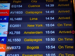 Wir sind aufgeregt … morgen wird uns unser Neffe für drei Tage in Quito besuchen. In der Nähe des Flughafens stehen wir die letzte Nacht auf dem VIP-Parkplatz … ein Parkplatz auf einem „Bauernhof“. Wir bekommen einen Shuttle-Service zum Flughafen … ca. 10 Min. dauert die Fahrt. Quitos neuer Aeroporto ist klein und sehr überschaubar … der Flieger der holländischen KLM landet pünktlich … freudestrahlend kommt uns einer der letzten Passagiere entgegen.