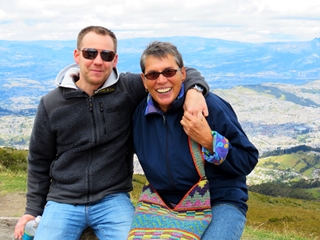 Wir verbringen drei herrliche Tage miteinander … fahren mit der Gondelbahn auf über 4.000m, geniessen den Blick auf Quito und seine „Hausberge“ ... wir fahren mit dem Taxi und erleben die historische Altstadt … wir lassen uns chauffieren zum „Mindo del Mundo“, bestaunen das echte und das unechte Monument am Äquator … wir beschnuppern den Krater des Pululahua, staunen nicht schlecht, wie schnell sich das Wetter hier verändert … zum Schluß werden wir bei herrlichem Sonnenschein mit einem Blick auf den höchsten, aktiven Vulkan der Erde belohnt … der Blick auf den Cotopaxi.