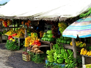 Kurvenreich geht es auf der E487(60) weiter … die Gegend wird feucht und subtropisch. Hier befinden sich die größten Bananen-Plantagen Ecuadors … viele Obst- und Gemüsestände an der Straße bieten ihre Ware zu günstigen Preisen an.