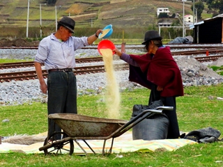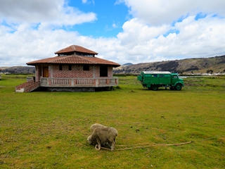 Ab El-Triunfo geht es wieder hinauf in die Anden … Tendenz steigend, bis 3.900m. Viele Privatfahrzeuge und Reisebusse sind heute, am Sonntag, unterwegs … zum Glück keine kurvenschnippelnde LKW´s. An der Laguna de Colta (kurz vor Cajabamba) finden wir einen guten Stellplatz. Wir können auf dem Grundstück der Fundacion Yachichic, gestiftet und gegründet von Deutschen Geldern, übernachten. Ursprünglich sollte hier die indigene Bevölkerung mit Rat und Tat unterstützt werden. Was genau noch hier passiert ist schwer zu sagen. Leerstehende Gebäude, ohne jegliche Funktion, sind für uns sinnlos investierte Gelder. Hier müssen Menschen den Menschen helfen.