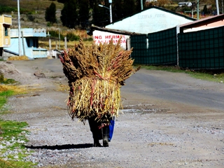 Wir stehen drei Tage … beobachten das Leben der indigenen Bergbauern. Die Hirseernte ist sehr mühselig … die Frauen schneiden und bündeln die dicken Halme bei Hand. Dann müssen sie wie Packesel die schweren Ballen kilometerweit zu ihren Häusern schleppen. Das Ganze nicht nur einmal am Tag. Oft haben sie noch ihr Baby in Tüchern um den Laib gewickelt … diese Menschen hier sind sehr, sehr arm.