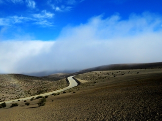 Wir reisen weiter. Da wir den Chimborazo, den höchsten Berg Ecuadors noch immer nicht richtig gesehen haben … fahren wir zum Parque Nacional. Der Eintritt zum Park ist wiedermal kostenlos … dafür fegt uns ein stürmischer, kalter Wind um die Ohren. Vom Parkplatz fahren wir auf einer Wellblech-Gravelroad hinauf zum Refugio-Carrel . Noch hängen die Wolken tief … der 6.310 m hohe interaktive Vulkan ist nur zu erahnen. Zu dem eisigen Wind kommt jetzt auch noch Regen auf. Keine 10 Minuten später ist der Himmel klar … wir erleben eine tolle Aussicht über die Strecke und Landschaft, die wir bereits hinter uns haben.