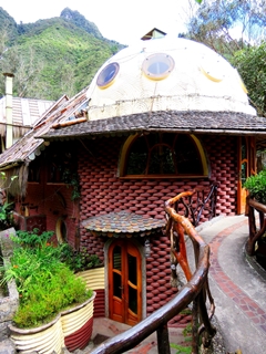 Am Nachmittag erreichen wir Banos/Ulba … hoch oben in den Bergen haben sich Regine und Dietrich aus Bremen vor vielen Jahren niedergelassen. Bei 27 Prozent Steigung schnaufen wir auf der einspurigen Strecke zu deren wunderschönen Finca Chamanapamba. Das Haus ist nicht von der Stange, nicht ein Fenster ist gleich …. so viele Ideen und Details sind erst Stück für Stück beim Bauen gekommen. Wir können uns kaum sattsehen … an diesem aus Naturmaterialien gebauten Schmuckstück.