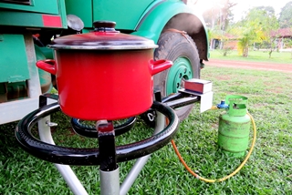 Auch wir lassen uns verwöhnen … gehen mittags zum Buffet in die Kantine. Zum Kochen ist es uns drinnen einfach zu heiß … wenn und überhaupt wird draußen gekocht.