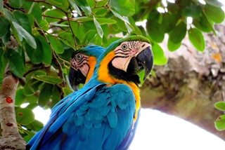 Als Beifahrer kann ich unzählige blau/gelbe und rote Macaws (Aras) in den Bäumen entdecken ... auch Tukane. Nicht immer ist es Sigo möglich, für meine plötzlichen Aufschreie nach einem Foto … anzuhalten.