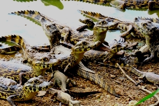 Gleich hinter der Einfahrt befindet sich ein kleiner Pond … hunderte von jungen Kaimanen liegen am Ufer kreuz und quer übereinander.