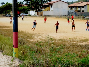 Bevor wir diesen Küstenabschnitt bei Seguro wieder verlassen, machen wir einen kleinen Abstecher bis Santa Cruz Cabralia. Unweit von hier befindet sich das Resort Campo Bahia. Dieses Resort wurde zur Fußball-WM 2014 vom DFB als Basisquartier für die Deutsche Nationalmannschaft ausgesucht. Fünf Wochen verbrachte sie hier mit Trainingsspielen und zur Akklimatisierung. Ein schönes Fleckchen. Auch die Nähe des Flughafens in Seguro war wichtig … von hier konnten die Stadien für die Vorrundenspiele schnellstens erreicht werden. Wir können noch heute die „Spuren“ für die Bus-Strecke zum Flughafen erkennen. Kilometerweit sind die Laternenmasten noch immer gestrichen … in schwarz/rot/gold.