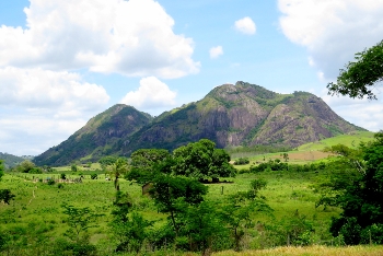 Weiter südlich von Linhares biegen wir auf eine Landstraße ab. Die Landschaft erinnert an die Heimat … schwarz/weiße Kühe, wie in Nord-Friesland, Obst- und Gemüseanbau, wie in Hessen, Granitfelsen, wie im Bayrischen Wald.