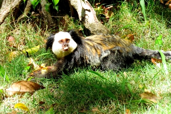 Diese Affen unterscheiden sich von den zuletzt Gesehenen. Sie haben weiße Köpfe und die Haarbüschel an den Ohren sind schwarz … Weißkopf-Büschel-Affen.