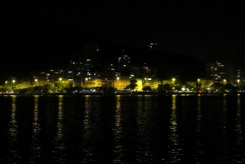 Auch Sigo macht sich nach dem Sonnenuntergang noch einmal auf den Weg … hält Ausschau nach einem freien Parkplatz gegenüber der nahegelegenen Militärstation. Aussichtslos … das kann am heutigen Sonntagabend noch lange dauern. Wir brechen auf … fahren die Promenade an der Copacabana ab. Wow … ist hier was los. Auf der Strandseite viele kleine Snackbars, Verkaufsstände und Straßenkünstler … auf der Gegenüberseite gut besuchte Restaurants, Hochhäuser in vollem Lichterglanz. Wir fühlen uns wie auf dem Strip nach Las Vegas versetzt.