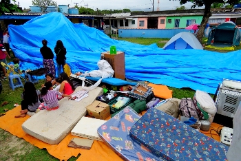 Am Wochenende müssen wir auf dem Campingplatz zusammenrücken … die Sao-Paulaner rücken mit Zelten, Campern und Reisebussen an. Was wir hier erleben … unglaublich. Matratzen, Kühlschränke, Fernseher, Mirkrowellen, Gasherde, Grills … komplette Haushaltseinrichtungen werden für das Camping-Wochenende mitgebracht. Wegen des immer wieder fallenden Regens wird die kleine „Innenstadt“ mit einer riesigen Plane überdeckt. Ja … die Brasilianer haben an Alles gedacht.