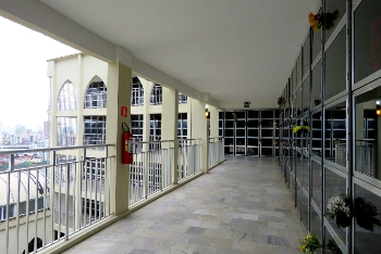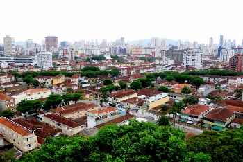 Wir verlassen die nette Truppe … fahren gen Süden über Sao Vincente. Hier drehen wir eine Ehrenrunde … die Hochhaus-Stadt und ihre Strände erinnern sehr an Rio und die Copacabana. In dem 14 Stockwerke hohen Memorial Necropole erschleichen wir uns eine Fahrt mit dem Fahrstuhl bis zum 12. Stock … haben über die Brüstung einen tollen Blick auf die Stadt. Ein wenig mulmig ist uns schon … dieses Gebäude ist ein vertikal gebauter Friedhof. Aus Platzgründen hat man diesen Cemiterio in die Höhe gebaut … mit 14 Stockwerken ist er der Höchste seiner Art überhaupt … hierfür hat er einen Eintrag im Guinnessbuch der Rekorde bekommen.