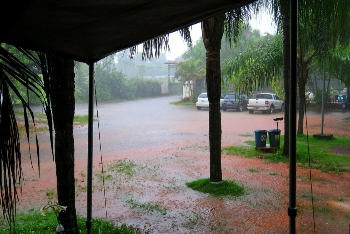 Es ist spät geworden … wir können vor dem Visitor-Center an der Straße übernachten. Am nächsten Tag will es gar nicht mehr aufhören zu regnen … zum Glück finden wir auf dem Campinggelände des Hotels Paudimar einen Stellplatz auf festem Schotter … hier machen wir es uns für die nächsten Tage „gemütlich“.