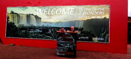 Nach vier Tagen Fahrt ab der Küste haben wir die Grenzstadt Foz do Iguazu im Dreiländer-Eck Brasilien, Paraguay und Argentinen erreicht. Bevor wir unser Übernachtungs-Quartier für die nächsten Tage ansteuern … studieren wir nochmals den Reiseführer. Wir lesen, daß an der Sperrmauer des Kraftwerks Itaipu jeden Freitag- und Samstagabend eine musikuntermalte Beleuchtungsshow stattfindet. Heut´ist Freitag … claro, dort fahren wir die wenigen Kilometer erst einmal hin. Schnurgerade geht es ca. 8km bis zum Visitor-Center. Für die kombinierte Tages- und Nachttour sind wir um 16.00Uhr schon zu spät ... wir buchen die Nachttour.