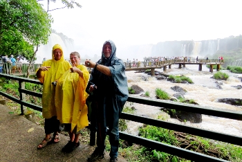Unsere Regencapes brauchen wir nicht weil es regnet … wir schützen uns und unsere Cameras vor der aufspritzenden Gischt, die durch die Wucht der Wasserfälle wie ein Schauer auf uns zukommt.