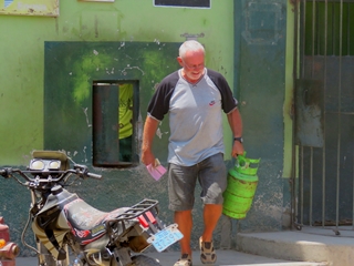 Über Internet (I-Overlander) suchen wir nach der nächsten Propangas-Station. In Piura ist das Füllen unserer aus Kolumbien mitgebrachten Gasflasche möglich. Wir finden Costagas in einem Handwerker-Viertel. Sigo gibt die Flasche anonym durch eine Luke in der Mauer ab … 10 Minuten später kommt sie auf dem selben Weg gefüllt wieder zurück. Der zugerufene Preis wird ebenfalls durch die Luke bezahlt … und ab geht die Post, ohne den Mitarbeiter persönlich gesehen zu haben.