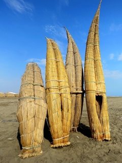 Nach einem ausgiebigen Einkauf im Tottus-Supermarkt in Trujillo fahren wir endgültig zum Hostal-Garden in Huanchaca. Hier bleiben wir ein paar Tage … beobachten die Fischer, die mit ihren traditionellen Schilfbooten, auch Seepferdchen genannt, täglich zum Fischen über die Wellen reiten.