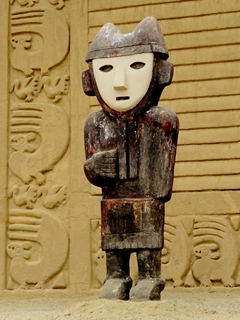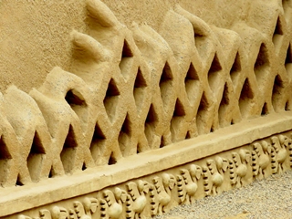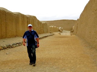 Noch vor der Zeit der Inkas beherrschten die Chimù die nördliche Küstengegend Perus … sie waren Fischer … gleichzeitig verfügten sie über ein ausgetüffteltes Bewässerungssystem, um die trockene Wüstengegend für Landwirtschaft fruchtbar zu machen. 60.000 Menschen lebten damals in dieser vollständig aus Lehmziegeln gebauten Stadt. Mit 28qkm Fläche ist sie die größte dieser Art weltweit überhaupt.