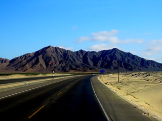 Am frühen Nachmittag nehmen wir unsere vorerst letzten 120km in Küstennähe gen Süden in Angriff. Die Panamericana führt uns durch eine fantastische Dünen-Landschaft … je tiefer die Sonne steht, umso schöner und kontrastreicher erscheinen die Schattenbilder der Dünen.