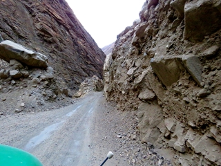 Wir haben Glück … bisher kein Gegenverkehr und ab dem ersten Tunnel ist die Straße bis auf wenige kurze Stücke wieder geteert und die Kurven sind langgezogen. Bevor wir einen Tunnel passieren, benutzen wir unser Hand-Nebelhorn (Souvenir noch aus unserer australischen Bootszeit) … hupen uns den Weg frei. Für alle Fälle gibt es immer wieder kleinere Ausweichbuchten.