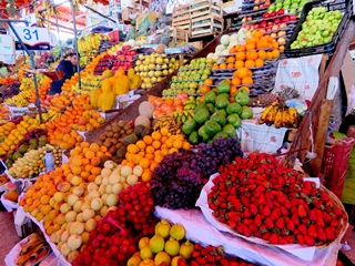 Von unserem Stellplatz am „Las Mercedes Hostal“ sind es nur wenige Minuten zu Fuß in die Innenstadt. Claro … auch wir laufen zum Plaza de Armas … werfen einen Blick in die Catedrale. Auf dem Platz herrscht ein buntes Treiben … sehr schön auch die umliegenden Cafes, Eisdielen und Restaurants. Wir schlendern durch die Straßen … besuchen den farbenfrohen und vielseitigen Mercado San Camilo. Hier gibt es so ziemlich Alles … die Obst- und Gemüse-Abteilungen haben uns am besten gefallen. Mit 30 Sorten Kartoffeln fällt uns die Auswahl schwer … wir nehmen von denen, die am lustigsten aussehen.