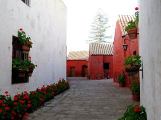 Auf 20.000qm liegen die Räumlichkeiten des Klosters wie eine „kleine Stadt in der Stadt“. 150 Nonnen und 300 Bedienstete lebten zeitweise in diesem Kloster … auch diente es anfangs als Internat für die Töchter reicher, spanischer Familien. Heute leben noch ca. 20 Nonnen in einem kleineren Bereich der Anlage. Der größte Teil wurde für den Tourismus freigegeben … ist eine der bedeutendsten Sehenswürdigkeiten im Süden Perus. Mehrere Erdbeben haben das Kloster zerstört … immer wieder wurde es aufgebaut und farbenfroh renoviert. Wir können uns beim durchlaufen der Gassen, Innenhöfe und der Inneneinrichtungen kaum satt sehen. Der stattliche Eintrittspreis von 12 Dollar … letztendlich ein sehr lohnenswerter Besuch.