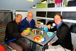 Für die Nacht haben wir zum ersten mal einen Schlafgast an Bord. Ein nicht sehr gut organisierter Deutscher Tourist hat den letzten Bus verpaßt. In dünnen, halben Hemdsärmeln steht er bei inzwischen nur noch 3 Grad am Straßenrand ...hofft, daß wir ihn nach Chivay bringen. Wir sind jedoch froh … die letzten 25km Gravelroad gerade noch vor Dunkelheit hinter uns gebracht zu haben. Das Angebot im Fahrerhaus zu schlafen … nimmt er sofort an. Auf 3.700m Höhe, dazu einen „Blinden Passagier“ im Fahrerhaus … wir verbringen eine unruhige Nacht.
