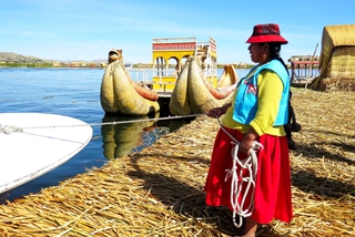 Unsere Bootstour beginnt in Puno … von hier werden wir zuerst zu den schwimmenden Schilf-Inseln der Uros Inkas geschippert. Häuser, Boote, selbst die Fundamente der Insel sind traditionell aus Binsen gearbeitet.